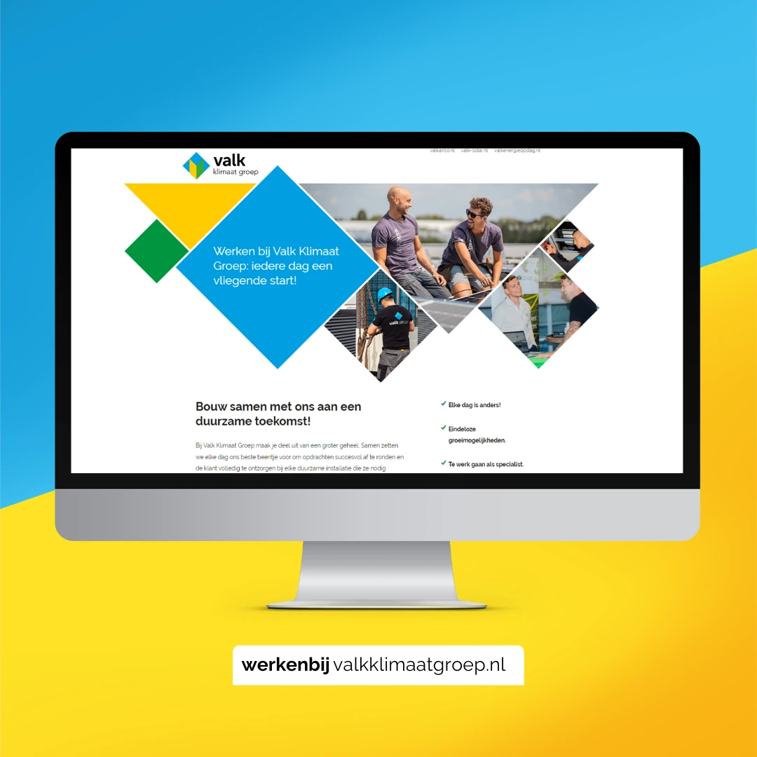 Door te focussen op een sterke en herkenbare identiteit voor Valk Klimaat Groep, waarbij elke tak zijn eigen specialisme benadrukt, hebben we de naamsbekendheid flink vergroot. De nieuwe werkenbij-website geeft een duidelijk beeld van het werken bij de groep, wat heeft gezorgd voor een constante stroom aan sollicitanten. Ook het 10-jarig jubileum hebben we groots aangepakt met een campagne die de naamsbekendheid verder heeft versterkt. Dankzij een gestructureerde aanpak en goede samenwerking hebben we Valk Klimaat Groep geholpen om hun doelen te bereiken en klaar te staan voor verdere groei.